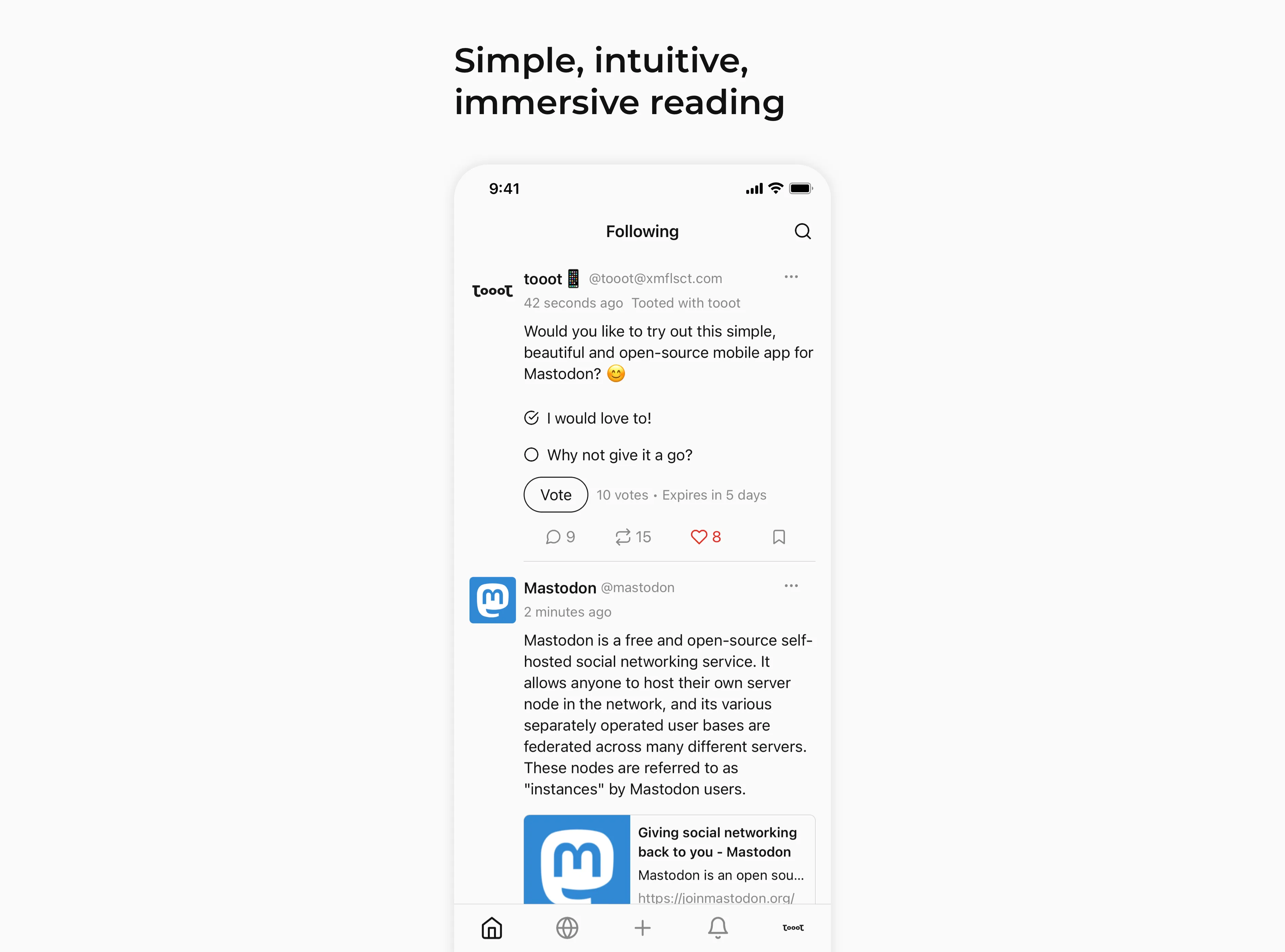 To build an application that connects to an existing protocol, understanding how data is structured and shared is crucial. While exploring Mastodon’s API, difficult decisions need to be made on what data is essential to be included, and why are they meaningful. By trying out existing third party mobile apps, immersing myself in its ecosystem, observing how other users are using it, I aggregate my learnings into practice, setting up tooot’s foundation structure.